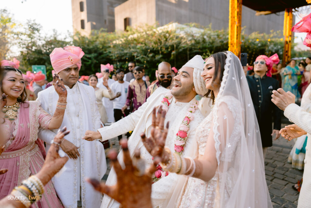 Dancing alongside her friends and family, she turned tradition into something deeply personal and progressive. Moments like these are what define modern weddings – where structure meets individuality.