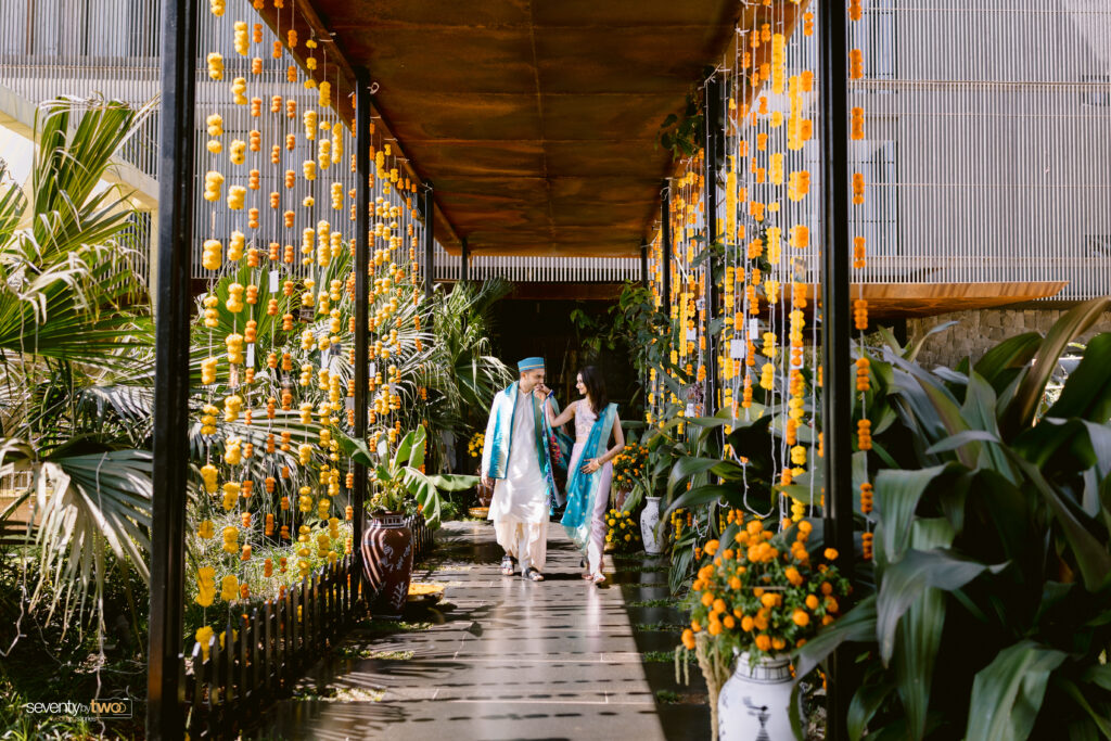 When the couple first approached Shubhtithi Weddings, they didn’t come with references or mood boards – they came with a feeling. They wanted their wedding to bloom like their favourite plant nursery, feel immersive for their guests, and celebrate everything they loved – from culture to music to nostalgia.